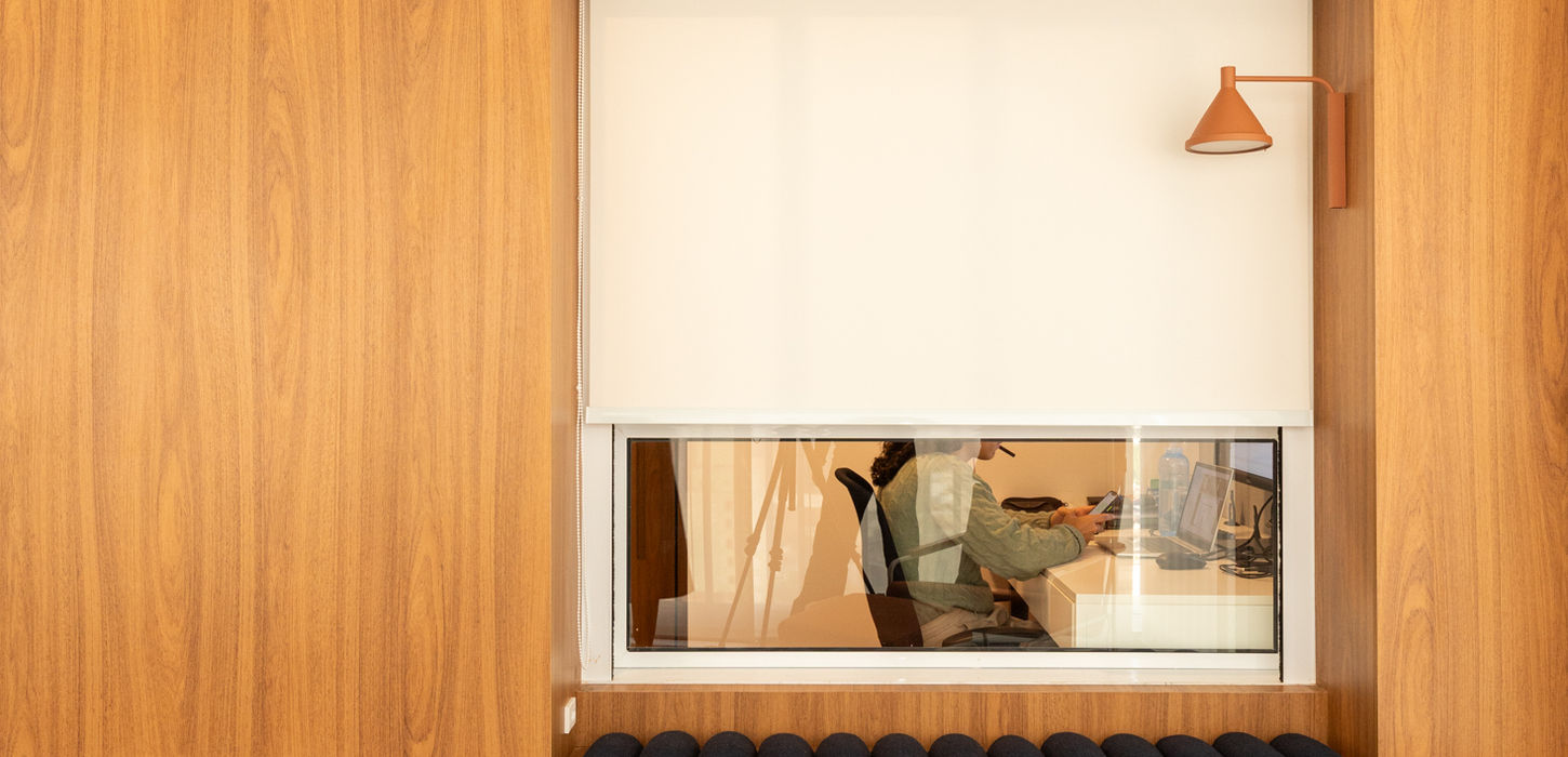 Nas marcenarias exploramos nichos que destacam-se pelo revestimento em ladrilho com padrões desenhados especialmente para essa projeto, as prateleiras em chapa metálica branca trazem leveza e vasos também revestidos das mesmas variações dos ladrilhos laranja dão autenticidade para o projeto.